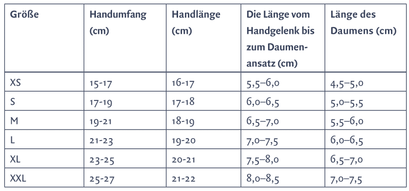 Bei den Handschuhen nimm den unteren Wert, da sie eher fest sitzen sollen. Die Stulpen und besonders Fäustlinge sollten etwas Raum haben, nimm dafür den größeren Wert.