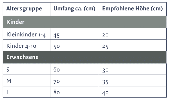 Wichtig: Sie sind nur Richtwerte – Material, Muster (z. B. Zopfmuster vs. glatt rechts), Dehnbarkeit und persönlicher Sitzwunsch beeinflussen die tatsächliche Länge stark.
